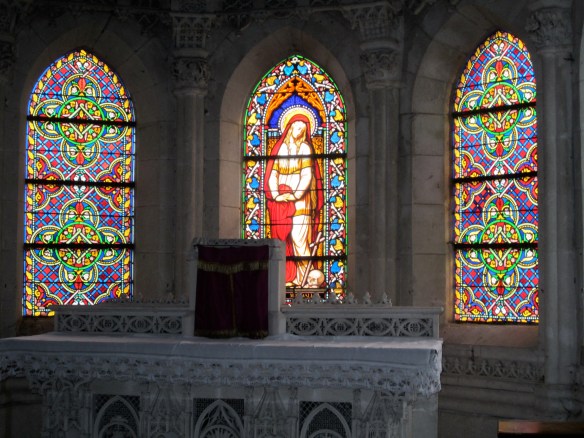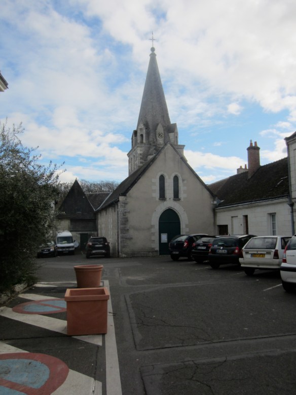 Back to our bikes: we leave Véretz going south on the rue Chaude, passing the Véretz church, where the elderly priest in Courier’s day enjoyed watching young people dance on Sunday afternoon, unlike the priest at Azay-sur-Cher, who forbade such dancing, drawing forth a brilliant pamphlet from Courier which we discussed in the previous post. Like the church at Azay-sur-Cher, the massive base of the bell tower is the oldest part of the Véretz church, dating from the 12th century. Much of the current church was built in the early 15th century.