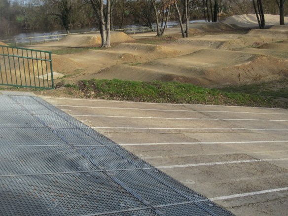 We pedal the 11 km back to Tours. Our route heads north, over the TGV line we have crossed twice today already, and through some lovely rural country with horse farms. As we head down the hill to the Cher, we approach the Saint-Avertin city hall. Almost next door is a convenient rest stop, Le Saint-Avertin Bar.[8] Nearby is a small lake in the flood plain of the Cher.