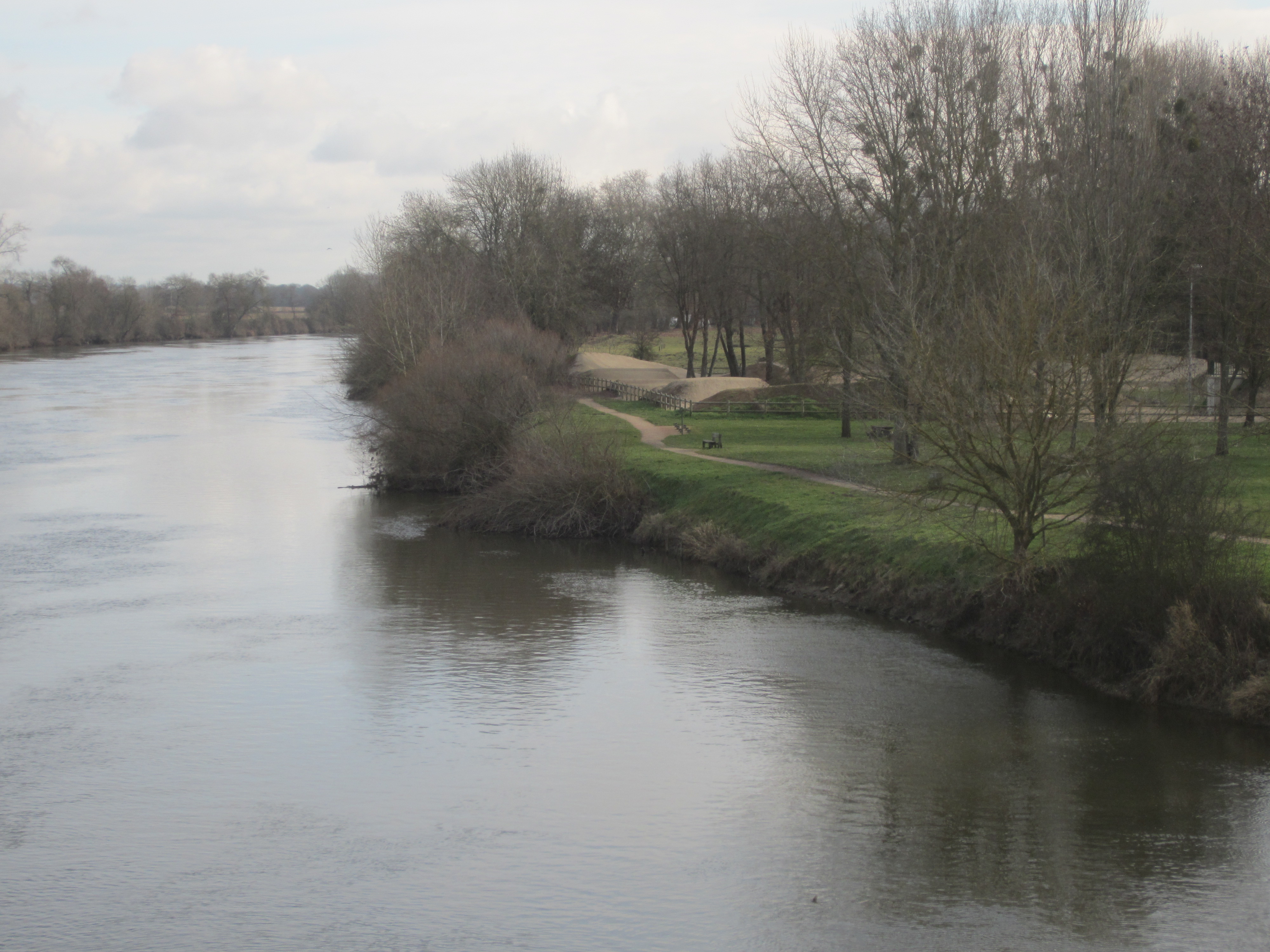 In the photograph we are looking east. On our left is an island which serves as a public park. On the horizon is a levee, beyond which is the Cher River. Behind the trees on the right is the Clapotis restaurant, with tables looking out on the lake, where Josette and I have shared many a fine meal with family and friends.